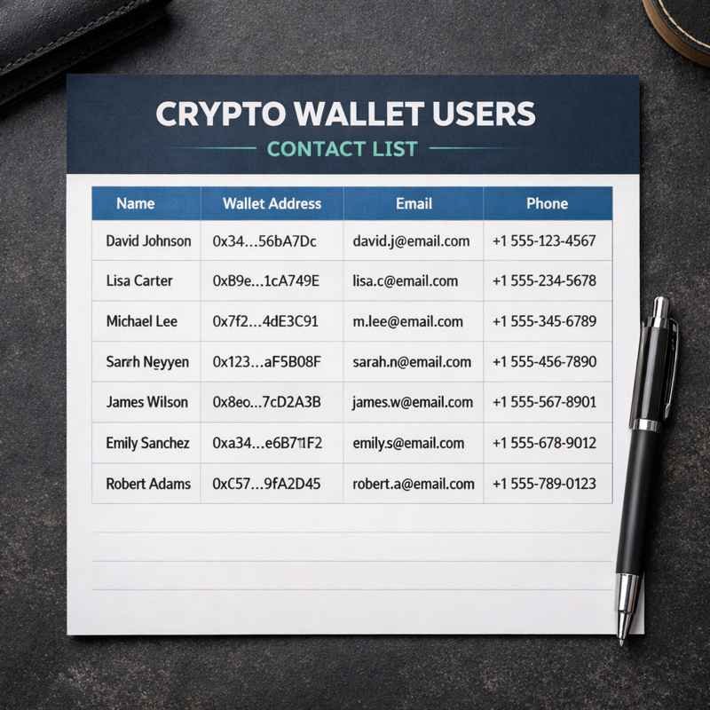A Crypto Wallet Users Contact List is a database that contains contact details of people who use cryptocurrency wallets.